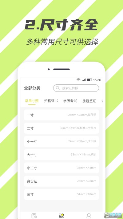 各类尺寸的证件照规格,一寸证件照、两寸证件照、学士学位、成人自考、教师资格证考试、各国签证照片、计算机等级考试、会计考试、学生证等数百种证件照尺寸格式,你要的证件照型号、规格全在这。