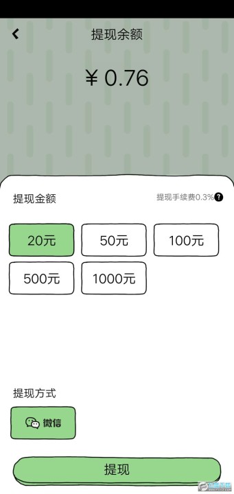 首次满0.3元可提现至微信零钱,后续满20元起提,到账迅速!