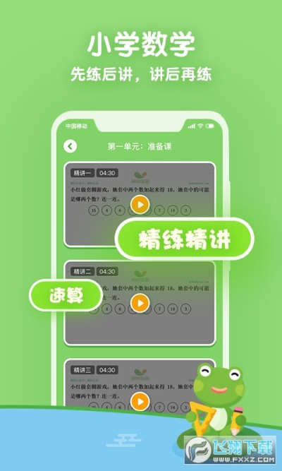 2.小学数学栏目:精练精讲视频课程 - 老师针对小学数学课本每个单元的难题、易错题、易考题进行精讲。看视频前小朋友可以先做题,再看视频,可反复观看,并提供同类型的检验题检查学习效果。同时提供有趣的数学口算、听算、视算等在线学习软件帮助小朋友随时利用碎片时间练习。