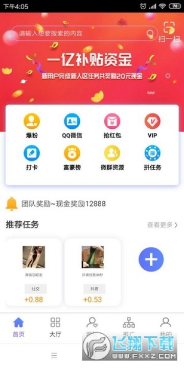 2、任务栏针对于手机兼职用户,各类任务类型以及薪资奖励都在此展现。