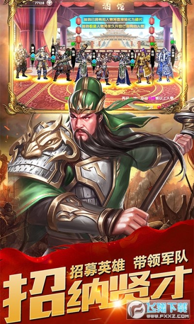 1、三国时代武将悉数登场,招募升级武将,提高技能,为您出谋征战,夺取最终的胜利;
