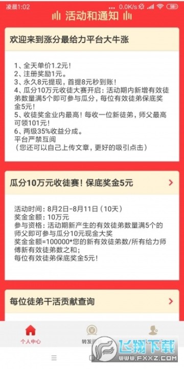 2、邀请收徒最高奖励101元/位,享两级35%收益分成,还有瓜分10万元收徒大赛