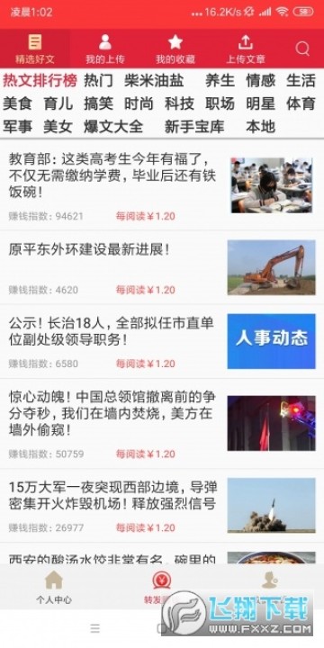 3、大牛涨app每日更新娱乐、健康、军事、民生等热门话题,用户将喜欢的文章转发至微信,好友阅读就能挣钱