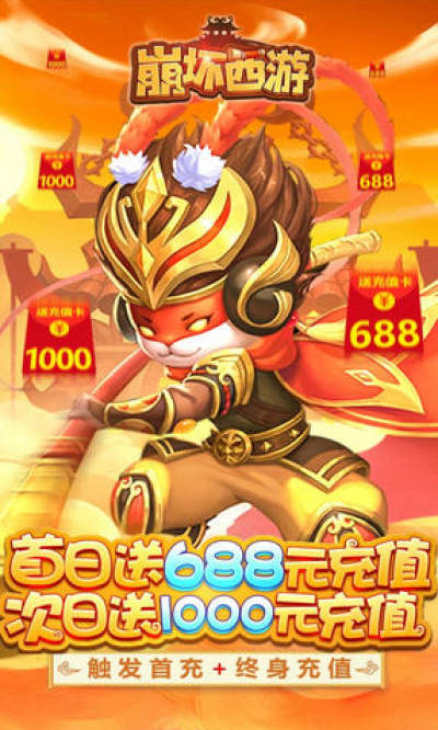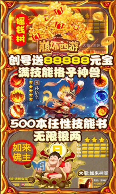 崩坏西游创号送88888元宝是一款西游题材回合制玩法手游,游戏有着高清细腻的画面,经典的西游剧情,上线就送1688充值和88888元宝哦!更有永久充值返利哦!喜欢就速速来下载吧!