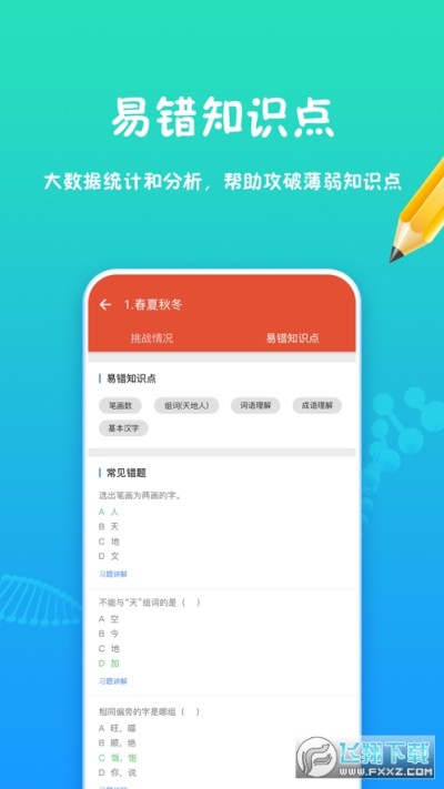 通过人工智能算法,推送更适合具体学生的知识点练习题,不断训练、刻意练习,直至熟练掌握