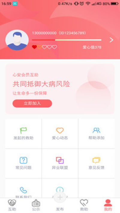 心安救助,是持有国家公募牌照的基金会发起的公益互助平台,是依托互联网构建的线上+线下智能医疗保障体系,为会员提供互助救助机制。加入的用户可享受80种高发重疾保障,以及5--150万元不等的互助金。