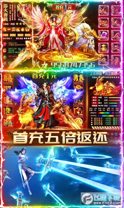 ★首充即送红色称号,红色灵侍,红色装备,时装以及海量道具,更有五倍首充返利,5个档位任你选择~