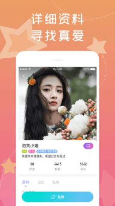 花伴交友安卓版是以款十分好用的在线互动交友软件,马上七夕节要到了,不想单身一个人被虐狗就赶紧来这里寻找一下自己的真爱吧,线下约见,同城交友,喜欢的小伙伴赶紧来下载这款花伴交友安卓版吧~