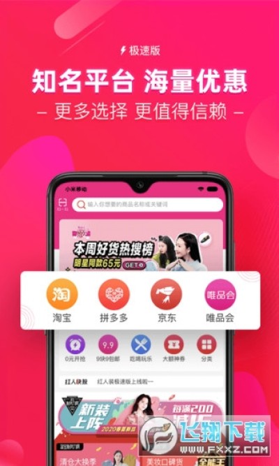 红人装极速版app是知名的一站式省钱赚钱购物平台,每天都可以边买边赚钱,商品都是有优惠券可以领的,在下单之前可以先来领券哦,而分享的话,大平台有保障,会更吸引好友下单,有需要就下载红人装极速版app吧。