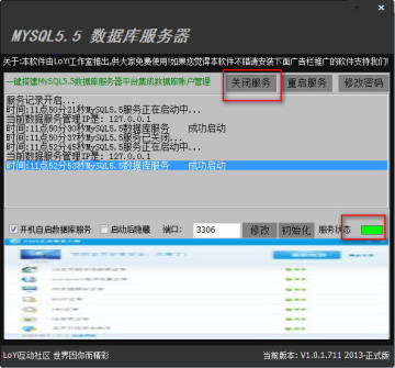 运行程序后,点击【启动服务】,服务状态为绿色时启动成功