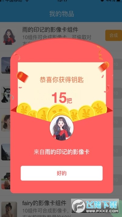 在『我的物品』中可以查看获得的组件,这其中我们最需要的肯定是红包组件了,集齐10个组件后可以抽一次奖,最高可获得9元。