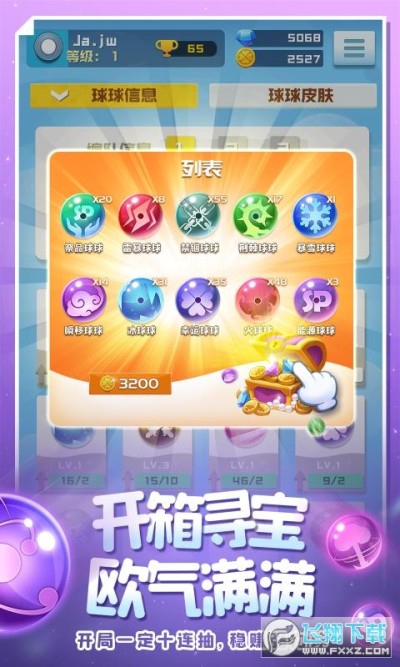 - 开箱寻宝,欧气上脑:商店宝箱、合作宝箱、赛季宝箱应有尽有,马上开箱寻宝,稀有球球、传说球球都在等你!想要快速升级,宝箱千万不能错过!