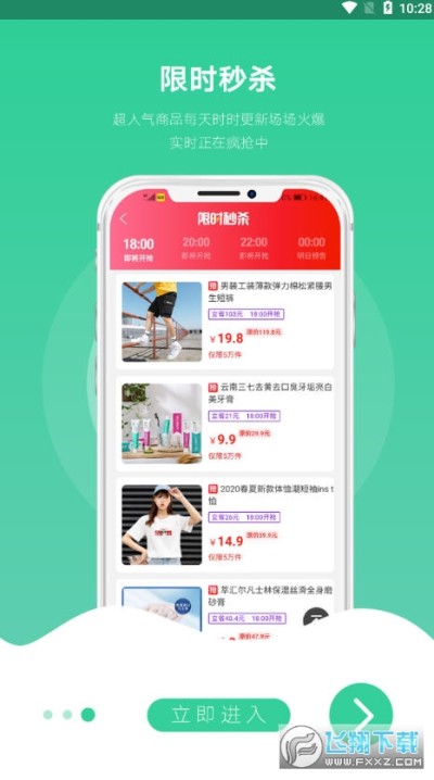 9.9包邮,1元秒杀,0元购 等丰富购物体验,让你每天体验双11,购物不剁手 嗨到爆