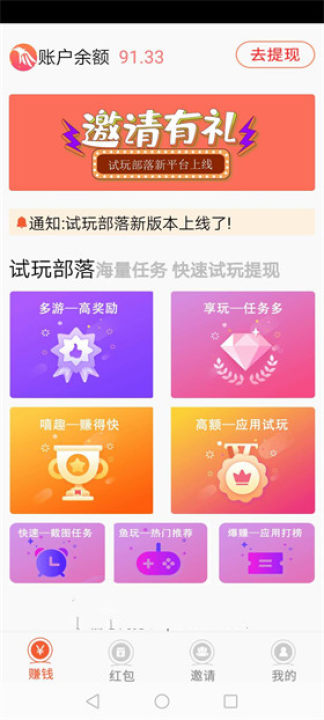 试玩部落全天支付宝提现,审核速度快,及时到账!
