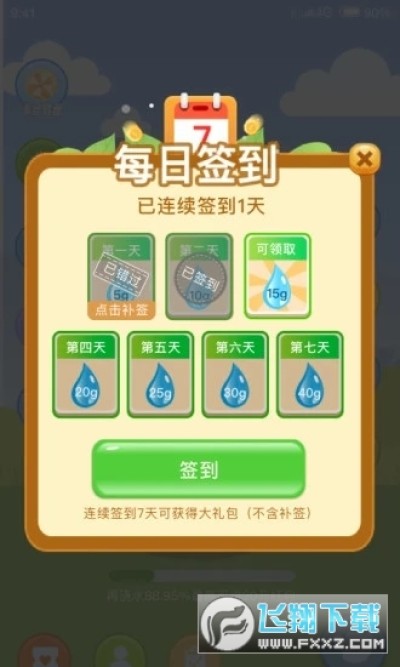4、每天签到可领取水滴浇水获取梦幻值。
