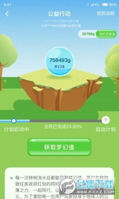 1、树苗商城:选择不同的树苗浇水种树可获得相对于的梦幻值做公益活动。