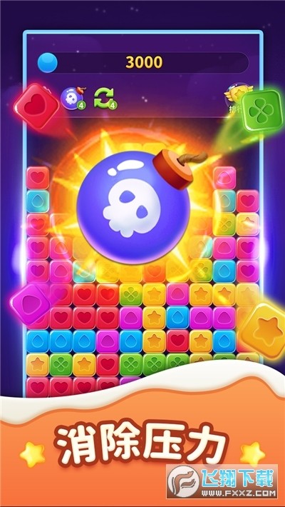 2、丰富的关卡挑战,移动方块组成相同的一列即可消除,和传统玩法差不多;