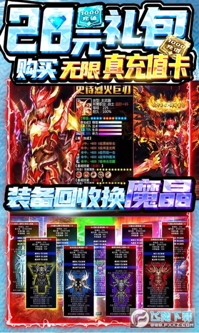 ★游戏特色装备回收兑换大量魔晶,击杀boss完成任务送一套魔幻游戏绝版时装。免费领取的VIP超送超炫酷坐骑-道镜鲲,视觉3超大闪眼。