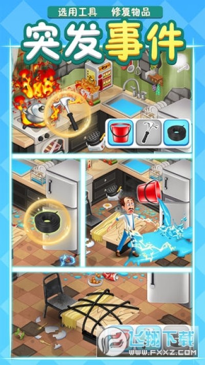 1、选择道具维护庄园内的设施,避开制作组的陷阱完成游戏。