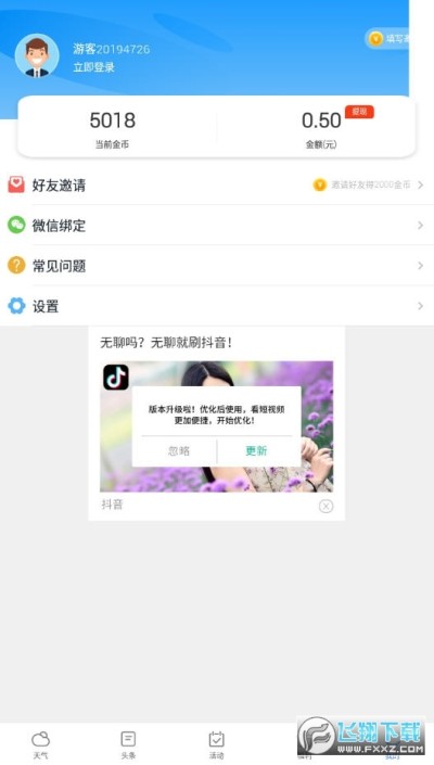 在这里你可以查看自己所在地当天以及接下来7天的天气情况,实时知道温度以及是否下雨,提前做好出行安排。在查看天气的过程中也能获得金币奖励,金币累计到一定数额,可以提现。