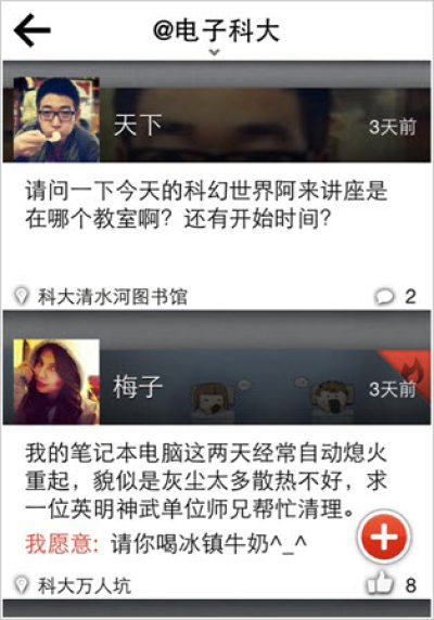 图片八卦,随时随地拿出手机,抓拍校园里的时事八卦,脉动消息附带精确的校园专属地理位置标签。