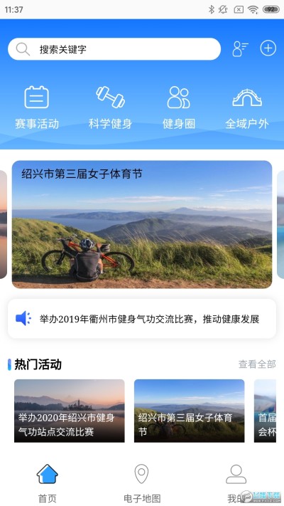 绍兴体育App,健身者能够查询到体育组织发布的各类赛事活动信息;