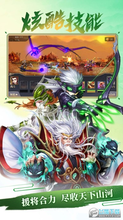游戏除了过关斩将的玩法外,更有跨服对战、玩家PVP等真人互斗,给予玩家一决高下的平台。四国势力各有所长,武将羁绊效果千般,让武将选择有更多的可能性,创造出更多的不可预料。你还在等什么?一起来玩吧!