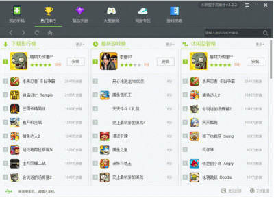 蚂蚁手游助手是一款可连接手机的手游安装下载工具,木蚂蚁手游助手拥有内含海量的精品手游,以内容全,下载快,汉化内容多为特色,木蚂蚁手游助手在界面上和功能操作方面,充分考虑国人使用习惯。