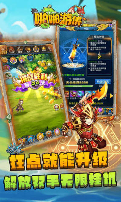 《啪啪游侠》是一款的放置类挂机冒险游戏,精美的游戏画面、新颖有趣的玩法、超乎想像的简单操作,感受即好玩又轻松的全新挂机体验。带宝宝、战轮回、闯兽潮、夺圣物、爬天梯,疯狂点击就能爆发出超强战力,24小时不间断升级轻松超神!