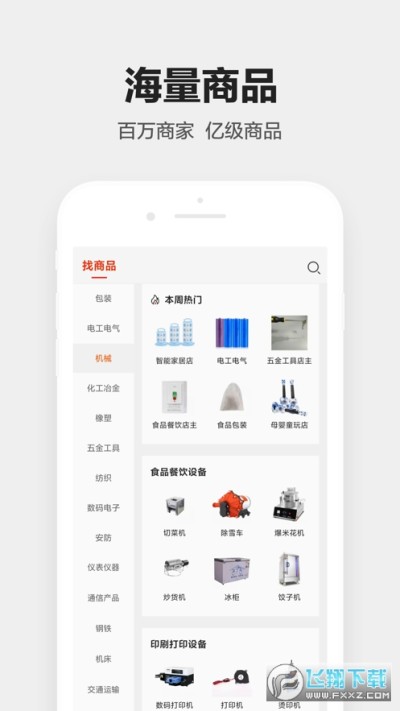 覆盖机械及行业设备、五金工具、电工电气、包装、安全防护、纺织皮革、化工、橡塑、电子元器件、印刷、仪器仪表、传媒广电、冶金矿产、钢铁、通信产品、能源、环保、机床、交通运输、二手设备转让、农业、加工、建材等工业品行业,深耕全国56个工业品产业带,百万商家,亿级商品,为您提供海量工业品信息。