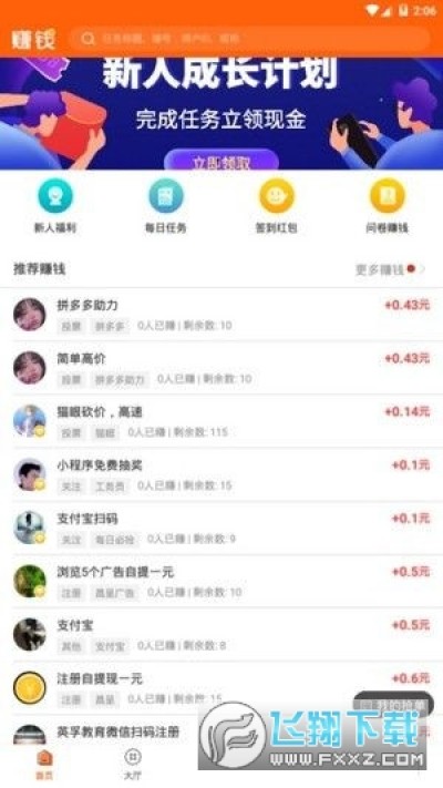 1、很多不同类型的任务,随时去获得更多赚钱的机会,让你轻松赚零花钱;
