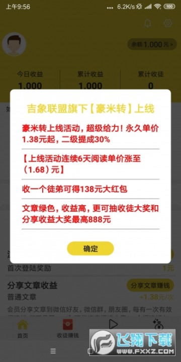 1、新用户下载注册豪米转app即送1元现金,永久转发单价1.38元起,新上线单价提升至1.68元/阅读