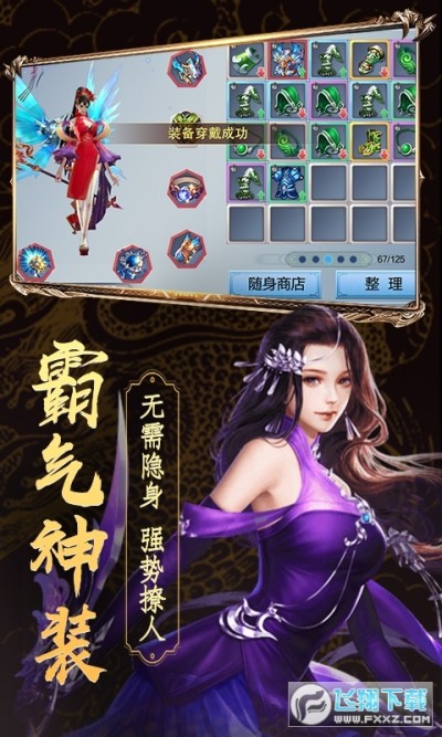 3、百变神装拥有新奇操作,坐骑神兽提高属性力量,修仙热血阻挡妖魔的入侵和战斗!