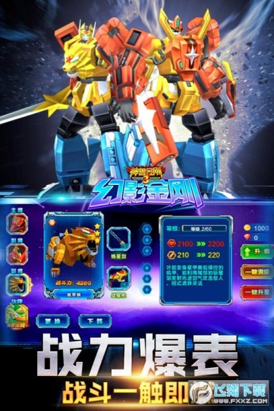 4、超霸气战斗小伙伴:霸气天罡机械兽,实力超凡来助阵;且玩且战,提升战力助闯关。