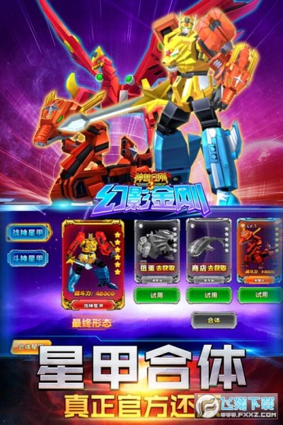 3、超强神兽星甲合体:收集星甲,合体战斗;合体金刚重装上阵,纵横战场不是梦想。