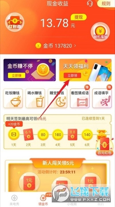 提现需要获取3个碎片,可以在提现界面点击去获取,也可以在首点击『天天领福利』进入。