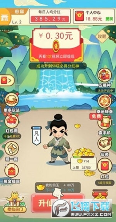 首富也修仙游戏是一个能赚钱的修仙主题游戏,简单的升级合成玩法,轻松易上手,奖励方面也还是不错的,首次提现更是有着超低的门槛,感兴趣的玩家们,快下载首富也修仙游戏试试吧。