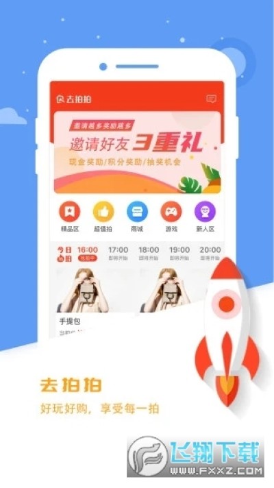 去拍拍商城app是一款手机在线拍卖购物平台,这款软件和商家联合提供一种拍卖购物的服务,在这里有非常多样的高性价比商品,在手机上开启拍卖模式可以以非常优惠的价格购买,快来试试吧!