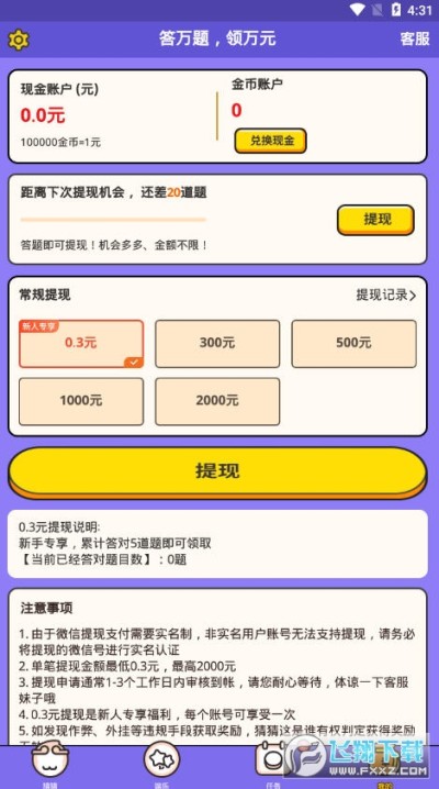 4.0.3元提现是新人专享福利,每个账号可享受一次