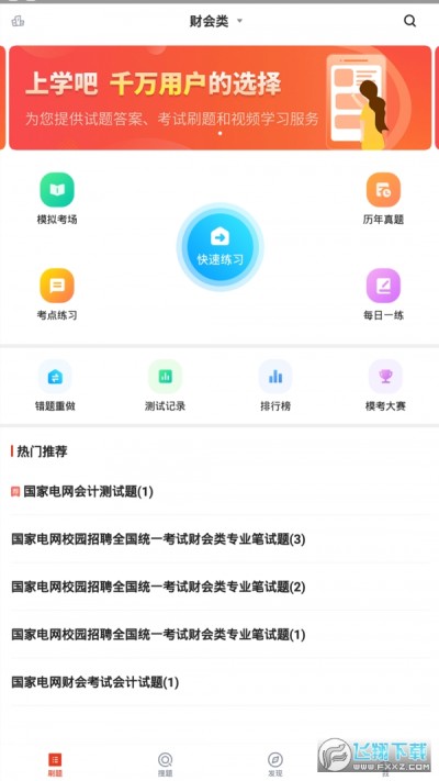 上学吧国家电网题库有模拟考场、历年真题练习、每日一练、快速练习、考点练习、考试押题、做题记录等多种学习与做题模式、丰富多样化的陪你一起考国家电网。