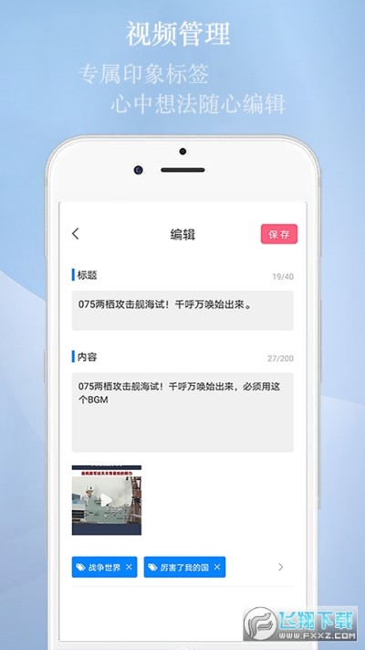 您账号下每条视频除了可以添加标签外,还可以给视频添加标题,备注等信息,并支持一键分享功能,快来将您的视频配上专属创作文字分享给其他好友吧!