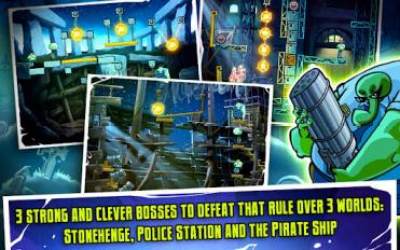 游戏的最终目标是杀死每一关所有的僵尸。杀死僵尸的方法就是要适当利用周围环境中的道具,比如切断悬挂火球的绳子,这个是比较常见的方式,和《糖果怪物》相似。