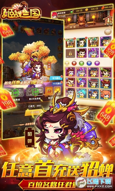 《姬战三国-送10000充值》是一款Q萌卡通、诙谐幽默的三国题材卡牌放置挂机手游。相信每一位玩家小时候都有买泡面抽卡的经历,开到珍稀三国武将卡必然是最开心的时刻,姬战三国完美复刻了这种儿时情怀体验。游戏还加入了放置挂机玩法,每天轻松挂机,开启全面收集武将,闯关攻打城池,体验随时随刻穿越回古代开启一统三国的征程。游戏里还有数十种培养组合路线、组队模式、跨服盟战等内容,上线就送稀有武将。[小故事] 貂蝉喜欢脑袋聪明的男人,为了赢得她的心,吕布企图要和脑袋最聪明的诸葛亮交换身体 但是讨厌突然变成一身肌肉的诸葛亮既感叹又生气,变成吕布的诸葛亮为了找回身体,跑去寻找吕布却被敌人挡住前路,所以他决定要击退所有敌人并找回身体!
