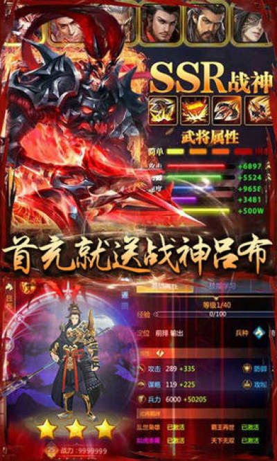 3、充值放大50倍直接1:500!首充所有档位三倍充值!首充赠送神将吕布轻松暴打BOSS!