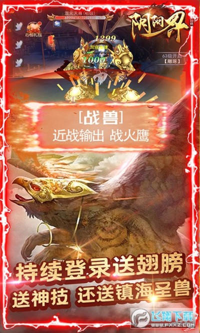 3、持续登录赠送绝版法宝七宝琉璃塔!绝版翅膀冥狱攫魂!还有绝版坐骑镇海圣兽!此外还有战宠神技、高级神装不容错过!
