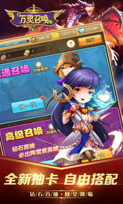 《万灵召唤》是一款有特色的集换式卡牌竞技手游。拥有精美魔幻风格设计,英雄+卡牌娱乐方式,五大阵营多种战术搭配。数百张卡牌任你搭配,每个职业都有自己的特色,是对战场的把握,还是按部就班的碾压开来开始战斗吧!
