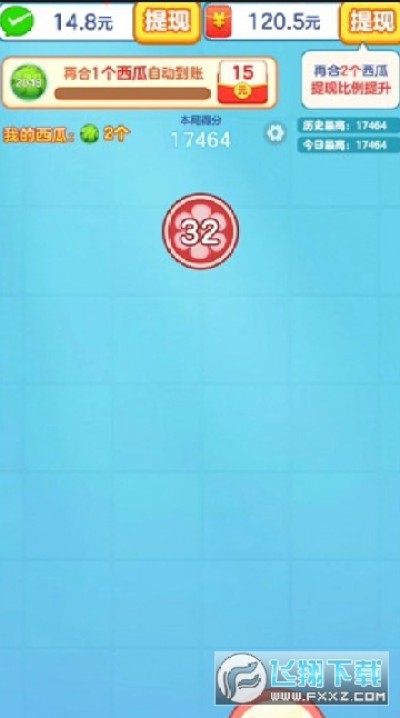2.根据游戏设定的任务目标,比如达到多少分、合成几个大西瓜等,完成相应的任务,领取丰厚红包奖励。