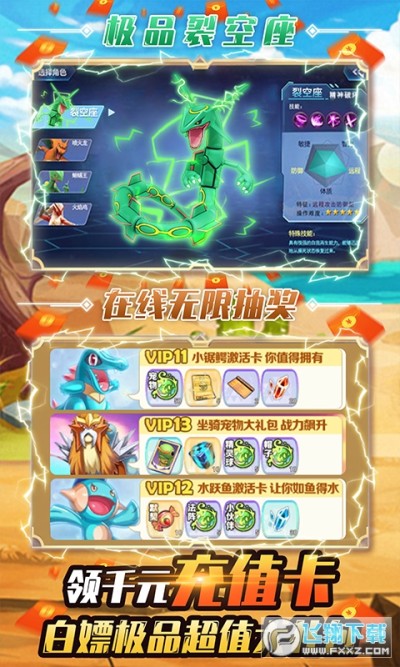 小黑的宝藏上线领千充福利版是一款以口袋妖怪为题材的模拟养成类手游,游戏里高度还原了各种口袋妖怪的角色和技能,上线领取千元的充值礼包和vip,还有千元充值卡和顶级神宠可以领取,轻松白嫖获取超值大礼包,给玩家们神豪的游戏体验!