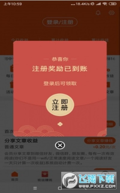1、登录注册后即可自动获得一元,直接存入余额内,分享的文章被点击阅读即可赚到1次阅读收益,无上限,每天还有抽奖福利。