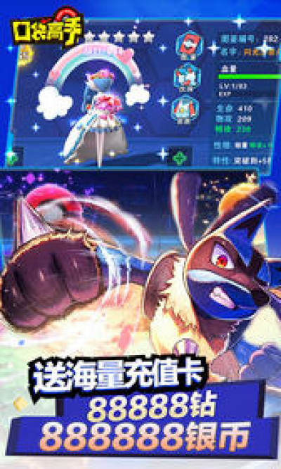 《口袋高手》还原经典玩法和剧情,全3D战斗,抓宠,战道馆,收集闪光异色精灵,mega进化,极巨化,让你体验前所未有的宠物小精灵冒险。开局送你VIP7,88888钻石以及888888银币,及海量充值卡。每日还有十连福利,嘉年华首日更有100连领取,助你轻松成为驰骋宠物小精灵世界。还在等什么,与你的伙伴一同开始冒险,成为一代宠物小精灵大师吧!